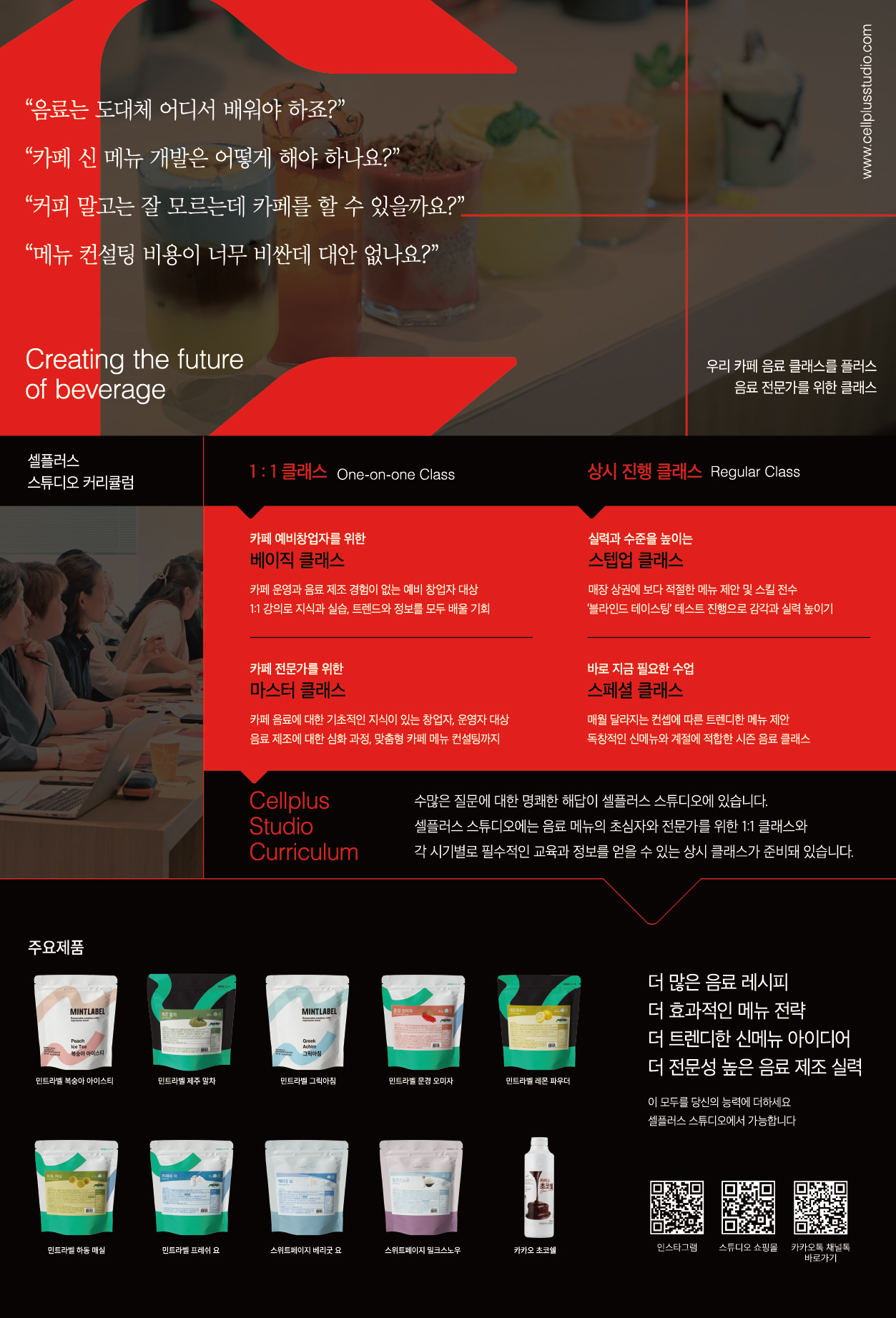 실제 카페 점주 및 창업 예정자들에게 필요한 클래스와 메뉴 홍보 및 레시피 개발에